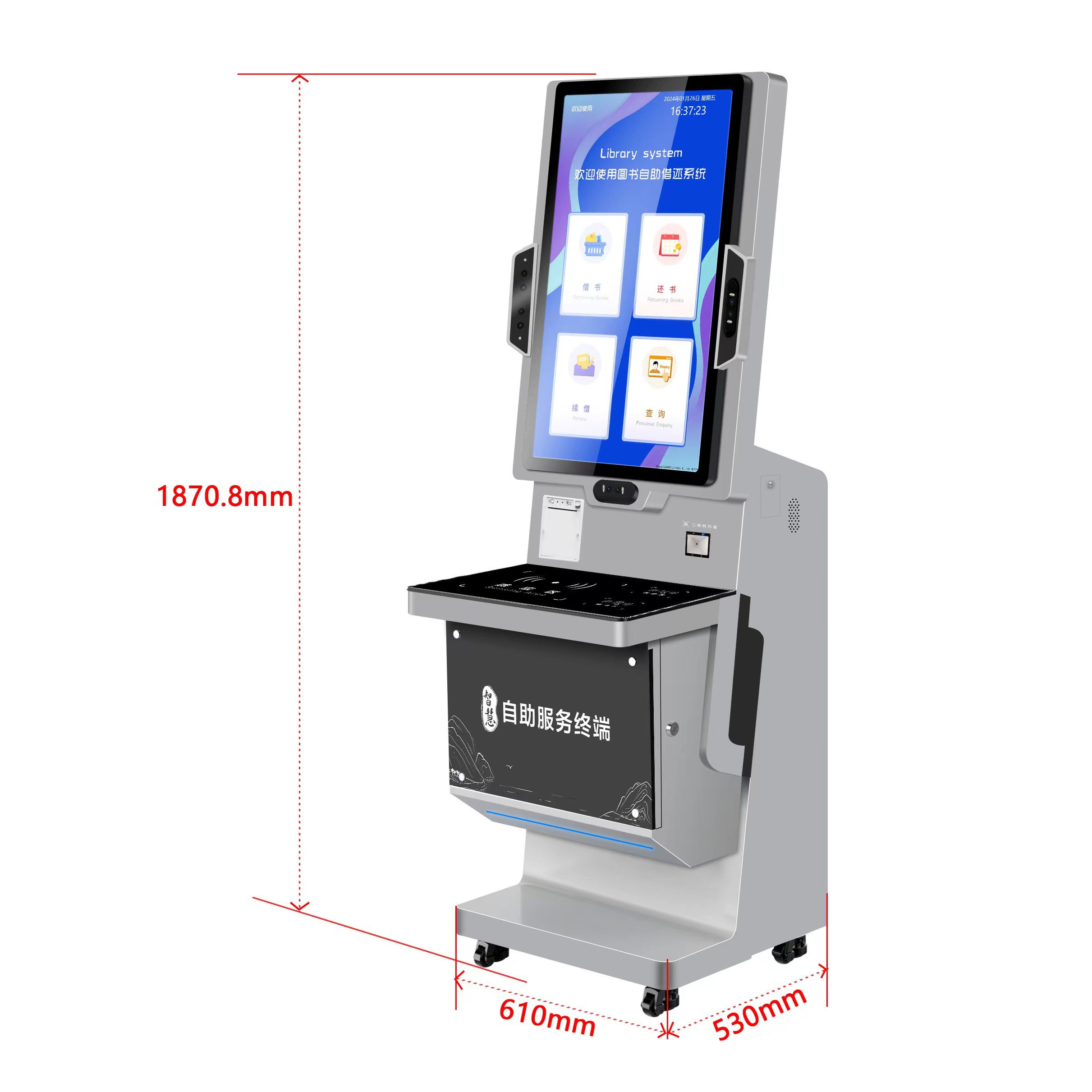 自助借还系统设备是自助借还书机一种新型的智能化设备,配备触摸显示屏或简单操作的人机交流界面、图形界面,通过协议或其他网络及专用接口与图书馆自动化系统数据相连接,由读者自行借还馆内书籍资料;帮助图书馆在有限的人力资源条件下,增进图书流通速率、简化借还流程,便利读者快速准确的完成借还,进而提高图书馆从业人员工作效率及服务品质的一种自助设备