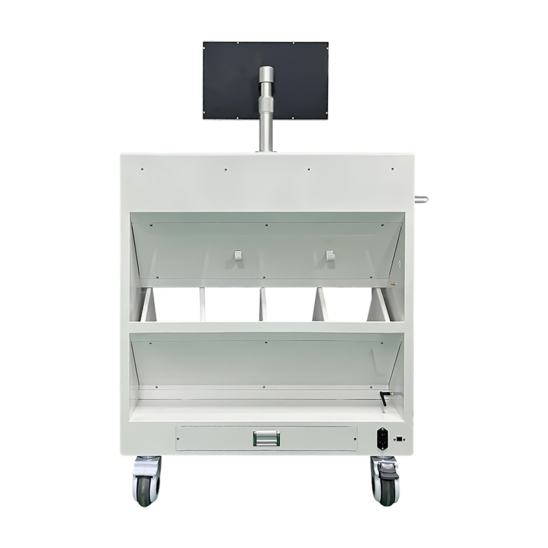 智能还书车是一种新型的智能化设备,配备触摸显示屏或简单操作的人机交流界面、图形界面,通过协议或其他网络及专用接口与图书馆自动化系统数据相连接,由读者自行对图书进行快速归还,读者把图书放到书车上,系统自动对图书进行归还操作,无须读者再做其他操作,极大限度简化读者归还图书的操作。